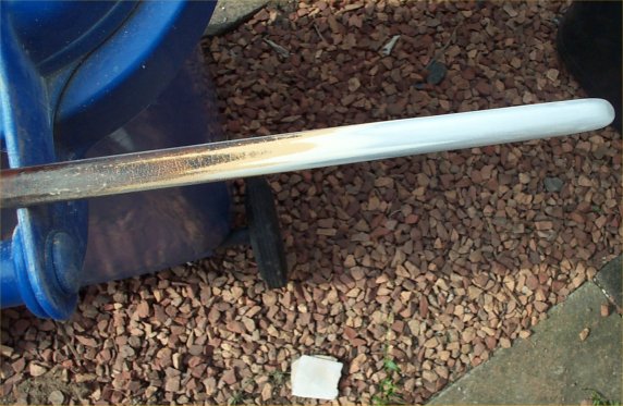 5. Scrub wheel with steel wool, used wet, to lift the tiny corrosion pits left where the lacquer had been chipped off. Again, do a tiny area at a time, rinsing frequently to ensure the wheel is smooth.