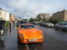 Today I am breaking a rule - this site is supposed to be about the car, but today the car took second place when we went to Robert and Vicki's wedding. 11 of us met up first, and after a bit of "will it rain / oh it's already raining / roof on / roof off" hilarity, we set off for Robert's house where he was, I think, mildly surprised to see us all pitch up in the street outside to take him to the ceremony. He chose Brian's 350 (who wouldn't?) as his preferred transport, and after decorating it with the customary white tape, we all set off through the town centre to the hotel for a few more photos and then home.