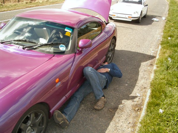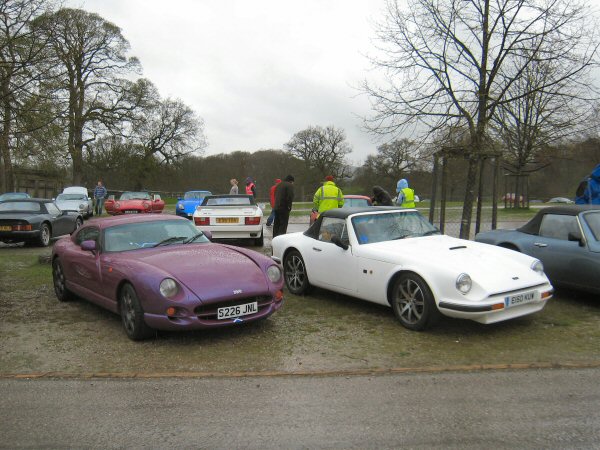 Here's a picture of the assembled multitude enjoying the summer sunshine. Note how everybody has brought parasols to keep the sun off, and and are making sure that there are no areas of exposed skin that could burn. Sensible people, TVR drivers.
