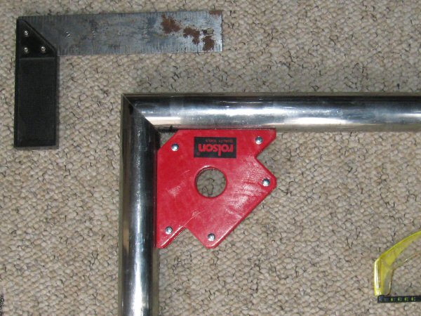 I pack the welder and all the tubing into the car, so that I can make up the opposite corner at home. And fix the welder if it needs it.