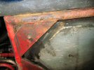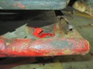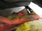 With some trepidation, I inspect the same point on the other side - but it seems to be ok, apart from the paint falling off in chunks. I put a lever in from the front, between the front of the tube and the chassis, and it seems to be pretty strong.