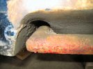 While it's cooling, I grind down the main welds (the body might not fit if the welds stick out too far). You can see the two plug weld behind the seam.