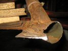 That leaves me with this. The metal at the back of the tube has almost rotted away and is wafer thin - it resists finger pressure but there's no point welding anything structural to that - I've seen thicker Kit Kat wrappers! So a change of plan is required.