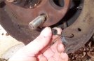 10. Then undo the brake pipe connector (11 mm spanner) being careful not to bend the pipe. Then undo the two 10mm bolts holding the wheel cylinder on. You'll need a very thin-walled socket.