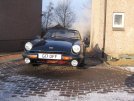 which is about to be connected violently to the TVR door bone if it keeps this up..."Well I started by looking for the reason that the nearside front foglamp wasn't working - and I eventually managed to trace this down to the connector behind the wheelarch - a bit of cleaning and as good as new! I'm glad it was that simple - my voltmeter wouldn't work properly, I think because the meter battery was too cold. I took the battery out and stuck it in my pocket to warm it up for later diagnosis.