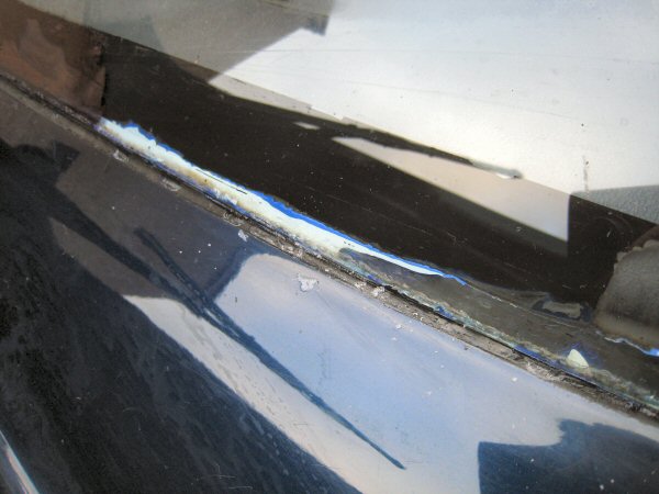 This the bottom drivers side - again, the stuff has penetrated the "seal" and filled the space behind.