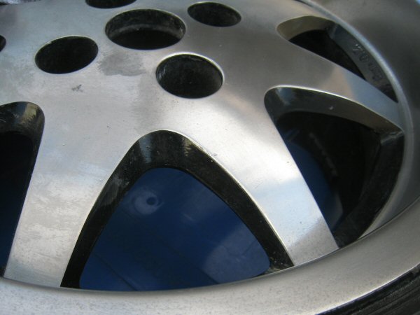 So I go along to the farm to pay my rent, and while I'm there, I take the two front wheels off the S, and bring them back to the house for polishing. I noticed when I took the car along that they were dull and had some surface marks and corrosion. Closer inspection reveals that they are "minging".