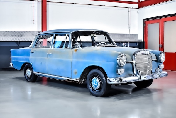 Meanwhile, I've still been browsing classic car web sites, and found this, up for auction. It's a 1962 Mercedes-Benz Heckflosse (or "Fintail") and it's lovely, in an ugly duckling sort of way. The outside looks like shit...