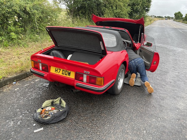 Our first trip "abroad" was to TVR S-Club in Coventry in 2007, on a weekend when TV weather reports warned of severe flooding, with several roads blocked, and police advising people to make essential journeys only etc. So naturally, after about half-a-second's careful consideration, we three, the original S-Series caballeros, decided to set off anyway, and had an absolutely brilliant weekend.