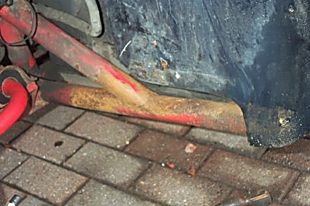 Since I bought the car, I have been meaning to paint the most vulnerable part of the chassis - the two arms at the front of the outriggers, just behind the front wheel arches. A well known rot spot but mine look ok - but you can't see them properly unless you take the inner wheel arches off.
