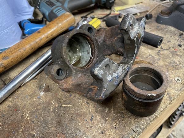 Then I decide to tidy up a bit, but quickly get distracted by a cardboard box that has my 2017 seized brake caliper in it. Is it repairable or should I just chuck it out (given that a refurbished one would be £150 or so and a rebuild kit would be a tenth of that)? Well, let's just see....