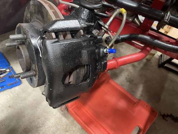 Now I can take down the caliper and bracket and give them a coat of satin black.