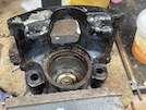Same routine - pop the positon out with an airline - except that even with the compressor cranked up into the needle-quivering "danger zone" on the pressure gauge, the piston won't budge.