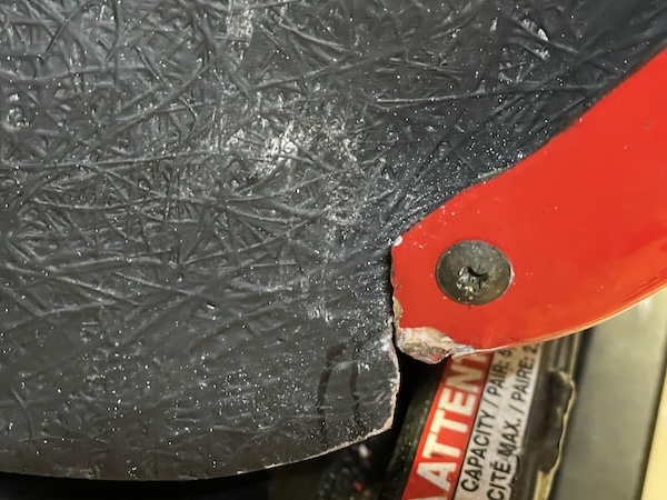 One option is to try to take the tyre off on my own. It's not hard to make a bead-breaker with a trolley jack and a ratchet strap, and that would let me get my hand in to change the valve. But first I neeed to buy a new valve...
