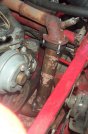 One problem is that the pipes seem to be slightly shorter than the cats, and also the front pipes are sloped upwards slightly to improve ground clearance. This means that when I tighten the exhaust clamps, the downpipes are pulled up tight against the chassis crossmember in front of the engine.