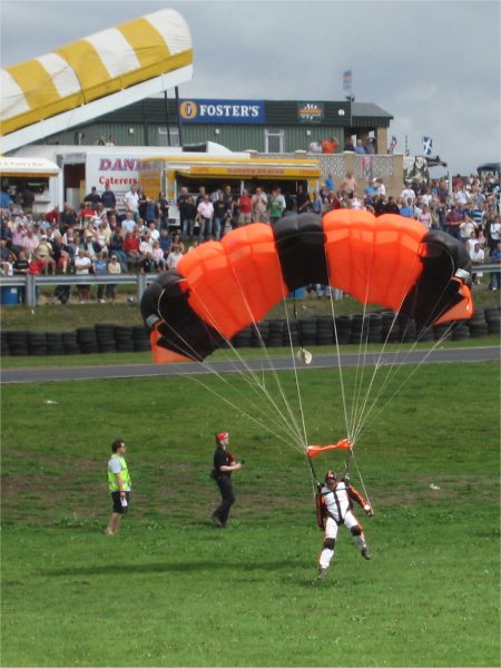 Considerable moaning and grumping ensues, until I spot a man with a radio and a car park map. A quick chat and we get reorganised into the right places. I blag a spot beside the entrance, backing onto the race track and within strolling range of the juice van. Oooo! Suits you sir!
