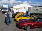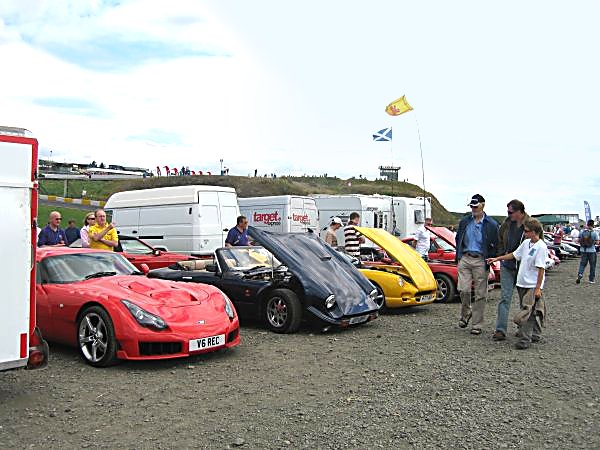Anyway I leave MG man to it, before anybody passing starts to think that he's stopped to help me, and carry on to Knockhill. We arrive to the usual parking chaos, and I am directed into a free space by Hitler's mother. While I am trying to reserve space next to me for the other 4 cars, a man comes up and tells me I'm in his club's space, and the only reason that it's free is because some of his members have been directed somewhere else.