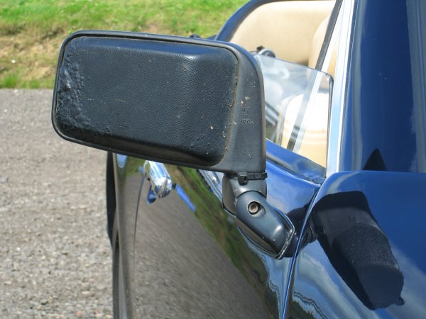 Finally, here's a pic of the driver's side mirror fitted to the car, showing the corrosion under the plastic coating. Looking through from the other side, it's easy to see that the inner side of the mirror is very rusty. I can't buy new mirrors like this - nobody knows whast car they were originally made for, and they weren't fitted to many of the S series cars.