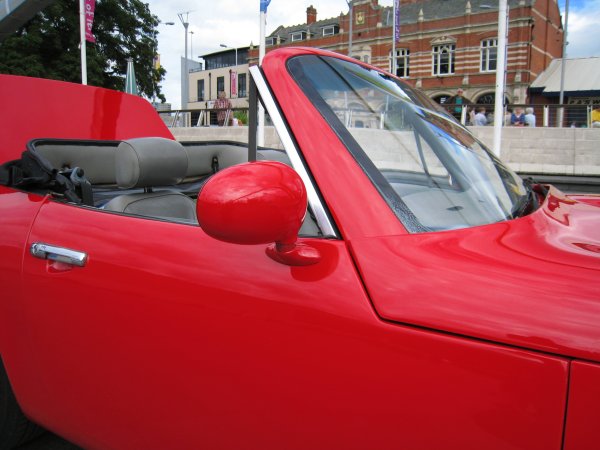 One of the details I need to address is the exterior mirrors. Mine are the older "Wedge" type and are bubbling badly, and I can't find where to get new ones. I am thinking of either refurbishing the mirrors I have (by stripping them and repainting them) or replacing them with something else. Some cars today have Audi mirrors fitted, which are ok, but one car has Mazda MX5 mirrors which I think look really good, and, importantly, have the same shape of base as mine so should minimise any need to butcher the door itself. This car belongs to Redcarman and Redcarlady who were very helpful in explaining how they did theirs. Thanks, if you're reading this.
