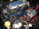 Next job - I noticed at the meeting last week that my polished and lacquered ignition coil was starting to rust under the lacquer. I take off the coil and paint the bracket to match the rocker covers. Then I paint in the flutes in the plenum in the same colour (the flutes matched the rocker covers 3 colours ago!)