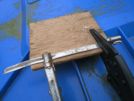 First job is to make new "tangs". I get a stainless steel hose clip and straighten it out, and clamp it to a bit of wood, and drill 4 holes in it. Then I cut the tangs out of the clip.