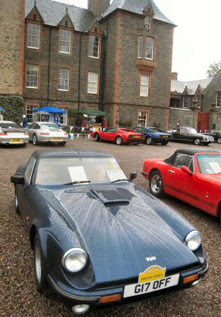 I get one customer though before the rain starts, a young lad called William who starts off telling me that he's always liked TVRs but then spoils it just a wee bit by telling me that he picked mine because it was cheaper than the Ferraris. As we leave the showground, I boot it up the hill, and his cool youthful indifference is broken by the gasp and "Jees" that escapes his lips as the noise bounces back off the bridge walls and he's pushed back into the seat. At the next junction I ease out onto the main road and then ask him if he's ready - then I give it full beans and roar up the road, him sitting with a huge grin. He tells me it sounds better than a Ferrari, much deeper, and he loves it. I tell him that I feel exactly the same way every time I start it up. We have a good chat on the way round, and by the time we get back 20 minutes later, he's laughing all over his face.