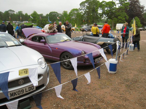 Adrian has arranged a visit to a TVR Dealer 100 miles away - the one that I take my Cerbera to. He's arranged sandwiches and a look around the workshops. Well worth a 200 mile round trip. What he hasn't arranged (and you would think he would have learned after Chatsworth) is half-decent weather. It's absolutely pishing down.