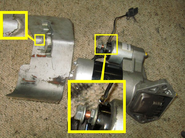 And here's the motor and the heat shield. I've highlighted two separate problems.