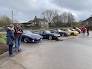 This is the most eventful leg of the journey... at the busiest roundabout in Chesterfield, I'm suddenly aware that Jim has stopped in the distance behind me, so I stop on the exit so that I can go back to see what happened. s I get out, I see Jim and the others approaching in the mirror, so I jump back in the car and wave them past till I can get started... except it doesn't. It turns over but no startee... the others all stop while I figure out that I can't hear the fuel pump starting up - but that might be because of the noise of passing traffic. I get Adrian to turn the key while I listen, and it sounds a bit half-hearted - so I belt it with a big spanner and it buzzes into life. Car starts, and we're off again!