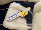 When I get in the car, I find that someone has left me a gift - a nerf gun. I'm not sure if there's a mafia-style message, and I don't have time to ask because the other two have disappeared while I'm turning the car in the car park.