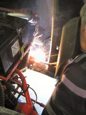 Discovered today that Dave's got a welder! He came round tonight to weld up the bonnet hinge,