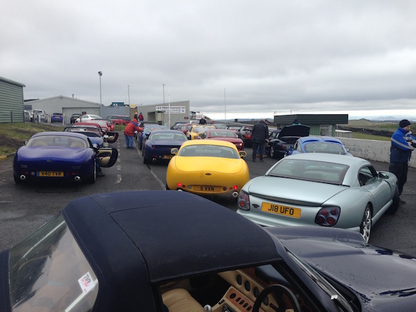 The secret signal is given, and we all set off for the Knockhill race circuit on a nice relaxing drive through the countryside and the rain. We meet up with another group on the entry to the circuit and are directed to our club area, where we all (eventually) park up. Good to see lots of people I haven’t seen for ages (and some I’ve never seen before at all), and also their cars.