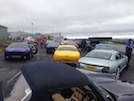 When we get there, there’s a couple of other guys, so I take 2 minutes to retighten my knob. The car park soon fills up though with a wide variety of models of all ages. And that’s only the owners.