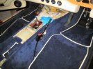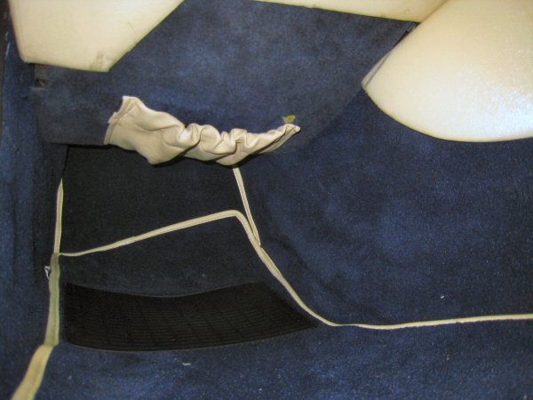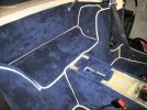 Setting aside my worries of a dead electrical system once I get it all back together, I bash on with the floor mat under the passenger seat, and then finally the footwell mat.
