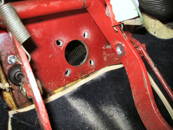 For my next trick (as learned by the old dog) I shall drill 3 holes in the transmission tunnel, and secure therein 3 pop studs, handbrake gaiter for the securing of.
