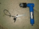 The right angle attachment works well, right up to the point where it suddenly doesn't - when it's almost through the pedal, it suddenly stops turning. A brief diagnostic check confirms that, in my expert engineering opinion, it's fucked. A fuller diagnosis would be that the internal gearing isn't engaging any more, but the simple explanation is enough. It was brand new and didn't even finish one hole. Take a good look at the photo. Avoid.