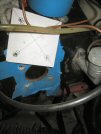 Then the mat up in the bulkhead. It has a slot cut for the wiring loom where it comes through, but I mark and cut another tiny slit for the two bolts that will hold on the hinge for the cover that drops down (that holds all the electrical gubbins up). The right angle plate is supposed to have the fuse / relay box mounted on it, but mine never has. It's turned through 90 degrees here to give better access to those two hinge bolts.