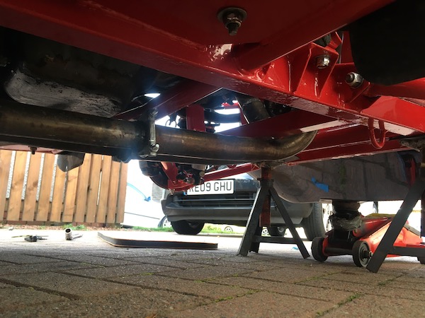 Anyway - I get to the garage, and there she is - looking fandabby, new wheels shining, chassis all pristine. He puts it on a ramp so I can have a look underneath, and it looks just great.