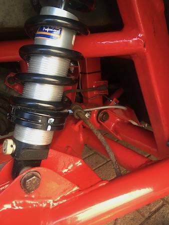 and the rear suspension. I can only lower it by a turn and a half, because then the spring is loose, and I don't want it coming out and catching on the edge of the cup.