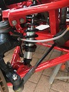 Then I remove the dampers and springs by undoing the top and bottom bolts on each side. I wind the adjusters down as far as they go, and slide out the top cups and remove the springs. Ready for reassembly!.