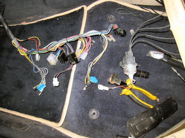 That lets me lift the console and turn it onto its side, and after noting the order of all the wiring connectors, by photographing them (with a few more photos than just this one) and writing them down on a whiteboard on the wall, I disconnect all of the loom and remove the console.