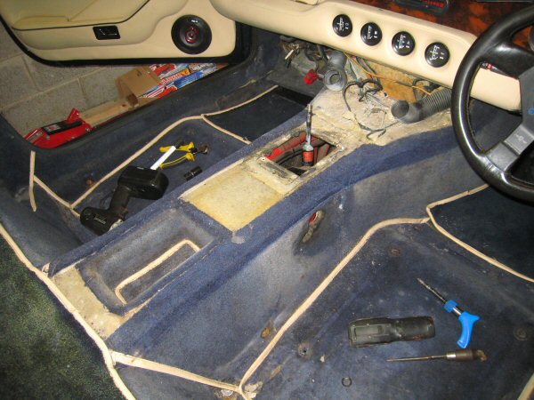 Then I remove the base of the wee cubbyhole in the transmission tunnel, and then the bit of carpet that goes round the sides.