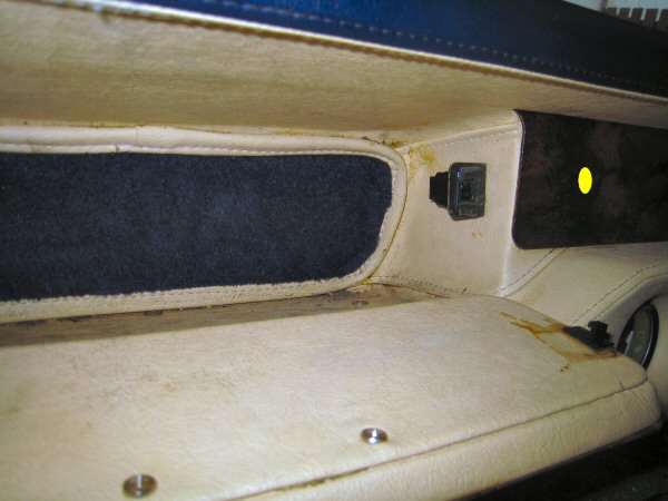 Then another note of how the area around the upper seat belt mount is carpeted, before I strip that off.