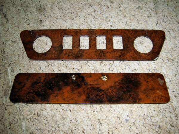 Here's the switch panel and the glove box lid. This photo doesn't really do justice to how shite they look - you can see the missing chunk, but you can't see the flaking lacquer or the "ploughed field" gloss finish. I still haven't got the other nut off the big panel either - 3 hours I've been out here, footering with one bloody nut... and all I've got to show for it is arms that feel like I've been cuddling nettles.