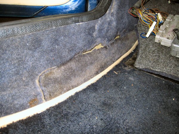 Next step is to remove the bits along the sills. My sill carpets were so rotten 8 years ago that I had to get new bits grafted in, and the carpet tears off at the edges of the patch, just in front of the front edge of the doors.