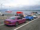 Soon, it's time to set off. We're not going in convoy, the plan is that you have a route book, which you are suggested to follow. We have booked overnight accommodation near Oban, so as long as you are there by dinner time, there's no problem. You can travel alone or in groups, you can stop where you like, the only stipulation is that you leave the start at one minute intervals. Everybody lines up (running over some plastic drip trays in the process - oops! (I remembered to take mine out, if only so that I could show off that, contrary to popular expectation, there were no oil drips in it).